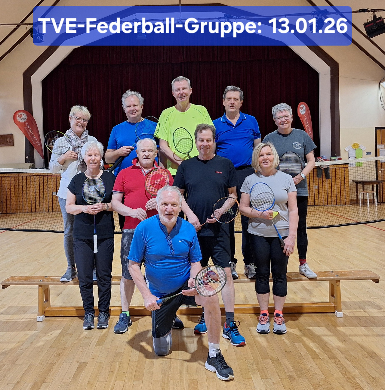 | Beim TVE Federball-Sport steht der Spielspaß im Vordergrund, mit möglichst langen Ballwechseln. Spielfeld und Netz sind vorhanden, Federbälle werden je nach Bedarf zugekauft. Schläger bringt man mit, oder es wird ein Schläger zur Verfügung gestellt. Wir spielen nach eigenen Regeln und auch um Punkte, aber nicht nach den Wettkampfregeln von Badminton. Kommen, schauen und mitspielen. |
