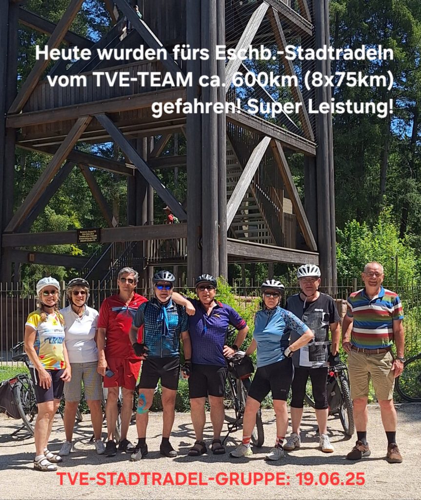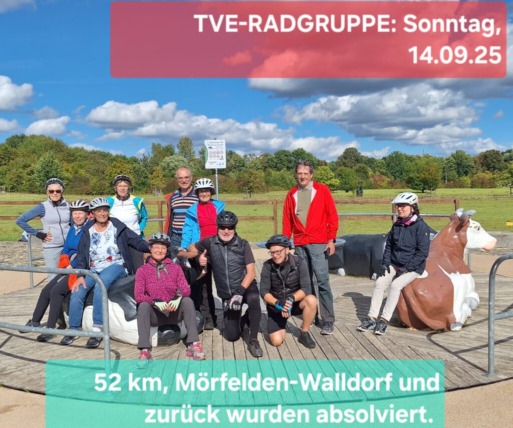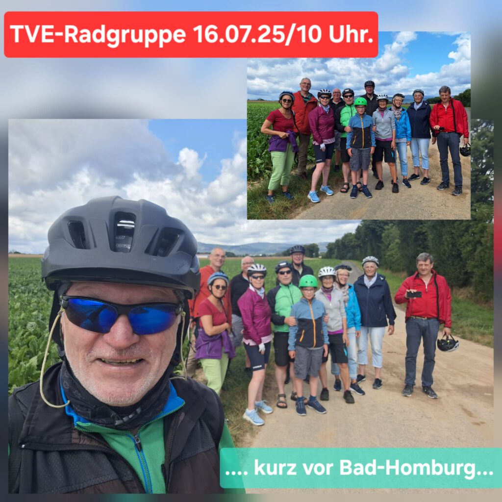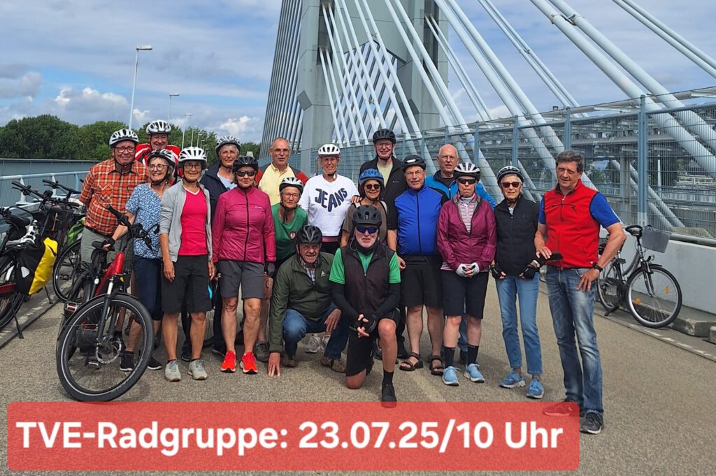 RADFAHREN …macht munter und macht Spaß. …hält fit. …bringt einen an Orte, wo man sonst nie hinkäme. …verursacht keine Parkprobleme und keine schlechte Luft. Radfahrer sind nett und sympathisch und bei jedem Wetter fest im Sattel. Allzeit gute Fahrt mit dem Turnverein Eschborn! Geführte Radtouren April bis September. Die Radtouren finden alle zwei Wochen mittwochs statt und zwar morgens um 10:00 Uhr und abends um 18:00 Uhr. Die Streckenlänge beträgt 20-30 km und dauert 90-120 Minuten. Tagestouren am Sonntag über 50-70 km von 10:00 bis 16:00 Uhr. Treffpunkt am Eschenplatz/Museum |