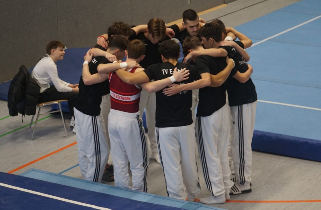 | Vizemeister der Regionalliga Am 16.11 wurde in Sulzbach das Ligafinale der Hessischen Turnliga ausgetragen. Die Turner des TV Eschborn zogen nach einer nahezu perfekten Ligaphase in das Finale ein. Dort trafen sie erneut auf die TuS Ober-Ingelheim, gegen die der TVE seine einzige Niederlage in der Ligaphase einstecken musste. Somit war dem Team um Mannschaftsführer Marius Roth klar, dass man einen perfekten Wettkampf brauche, um die favorisierten Ingelheimer ärgern zu können. Der Ausfall von Leon Gneist, der bei den vorherigen Wettkämpfen jeweils an 5 Geräten zum Einsatz kam, erschwerte die Ausgangslage zusätzlich. Nichtsdestotrotz kam das Eschborner Team gut in den Wettkampf rein und konnte alle ihre Bodenübungen sauber durchturnen. Doch auch die Ingelheimer konnten ihre Leistung abrufen, weshalb der TVE nach dem Boden bereits 3:5 zurücklag. Doch am Pauschenpferd zeigten die Eschborner Nervenstärke und konnten zurückkommen. Nach zwei von sechs Geräten führte der TVE nun mit 9:8 Score Punkten. Doch an den Ringen, dem Paradegerät der Rheinländer mussten sich die Eschborner unglücklich 8:0 geschlagen geben, was zu einem Halbzeitstand von 9:16 führte. Auch am Sprung konnte man den schwierigen Sprüngen des Favoriten kaum etwas entgegensetzen, weshalb es zu einem Zwischenstand von 26:13 kam. Somit war die Niederlage kaum noch zu verhindern. Trotz guter Übungen endeten die Duelle immer knapp zu Gunsten der Ingelheimer. Auch am Barren und Reck setzte sich das fort und der Entstand von 39:13 lässt den Wettkampf einseitiger aussehen, als er eigentlich war. So sahen es auch die Eschborner Fans, die im naheliegenden Sulzbach klar in der Überzahl waren. Rolf Bernhard, Abteilungsleiter fürs Gerätturnen im TVE und Fan der Mannschaft sagt: „Im Vergleich zum letzten Jahr ist das schon eine andere Hausnummer.“ Und auch Trainer Niklas Roth kommt aus dem Lob über seine Mannschaft nicht heraus. „Wir haben eine Hammer-Saison geturnt und uns auch heute kein Sturz geleistet. Nächstes Jahr greifen wir nach dem Titel!“ |